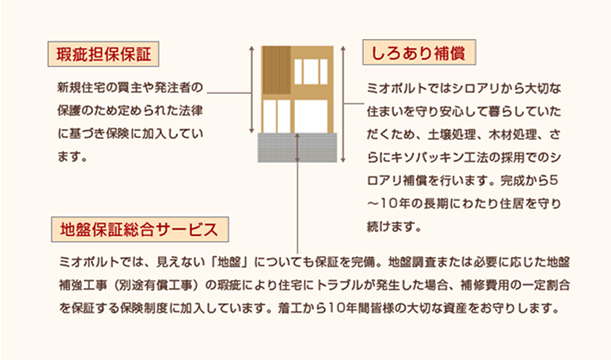 安心して住んでいただくため、3つの保証を用意。